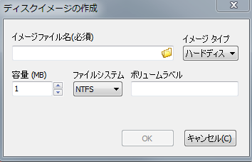 イメージタイプはハードディスク、ファイルシステムはNTFS、ラベルは空白でいいと思います。