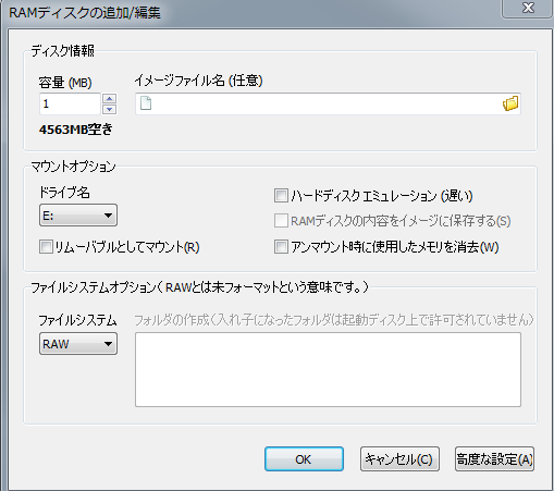 ただし、RAMDiskを除いた使用できるのメモリは4GB以上は確保できるようにしてください。